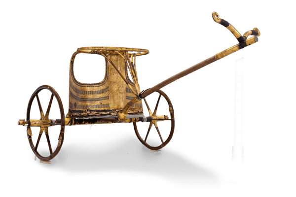 Chariots: 2 of the 5 chariots, currently exhibited in the Egyptian Museum of Cairo, both are thought to be made especially for the ritual, and were made by utilizing bentwood technique to make the body and wheels, and the surface is decorated with gold leaf over white substrate. Moreover, it's constructed with composite materials such as stone and metal in the decoration of the cockpit.