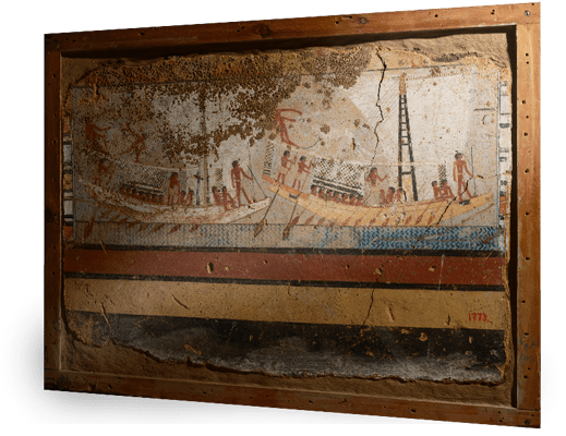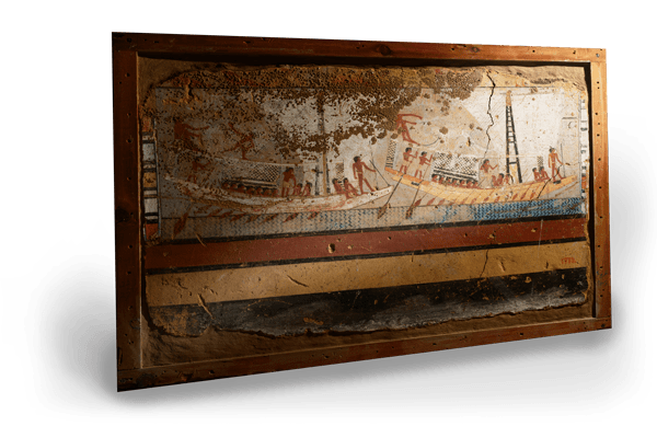 7pieces of wall paintings and stone were chosen as target artifacts, 1 of which is a lead target artifacts and the other 6 pieces are follow artifacts. Ini-Senefru-Ishetef's mural paintings were originally painted on the plaster substrate on the surface of the mud brick wall of his mastaba tomb in Dahshur. However, in the 19th century the wall surface was cut and moved to Egyptian Museum in Cairo, then displayed within wooden showcases that are fixed to the walls. These paintings are separated and piled up into different cases which made understanding of the whole context very difficult, and therefore diminishing the meaning and value.