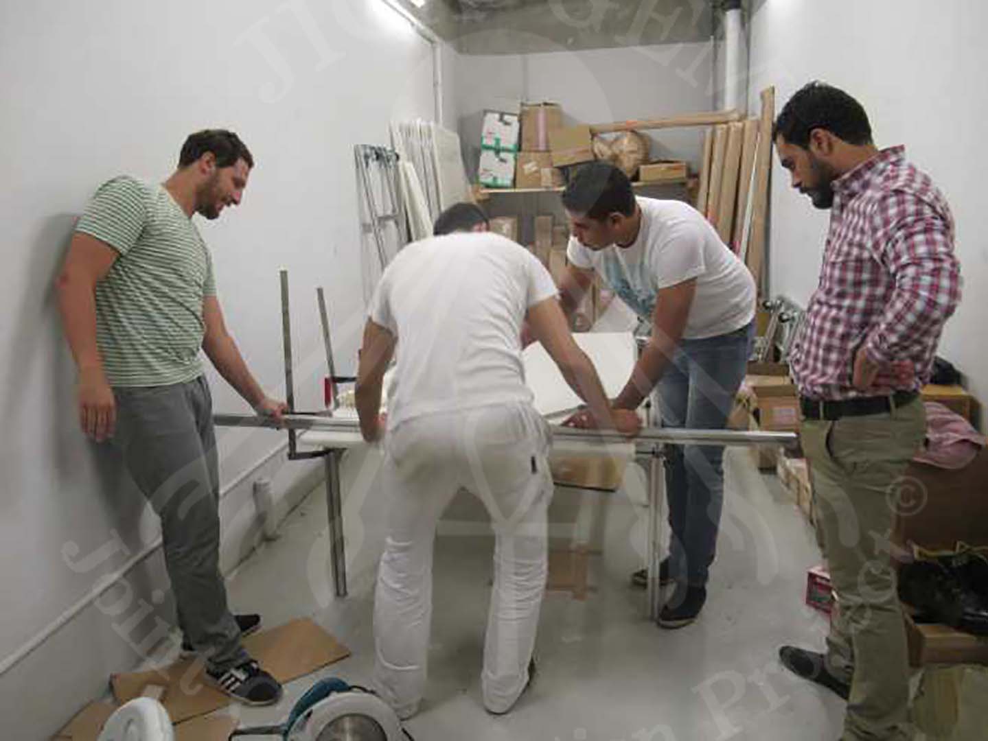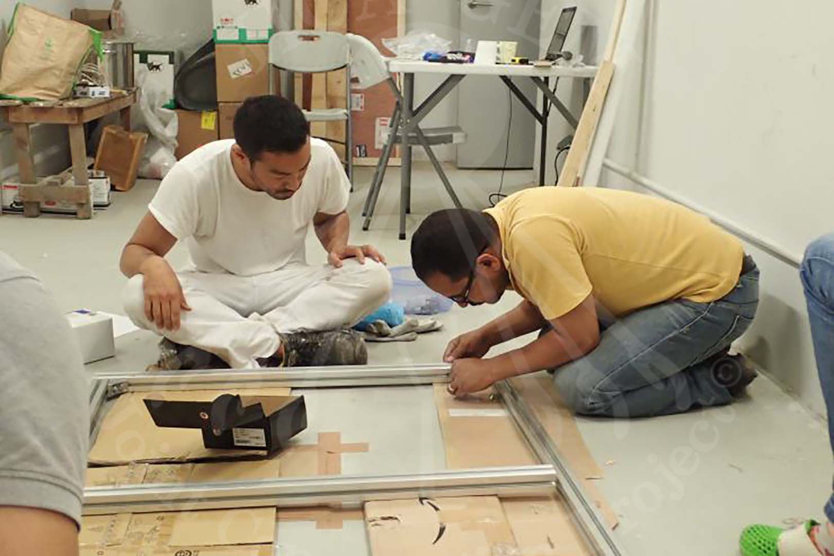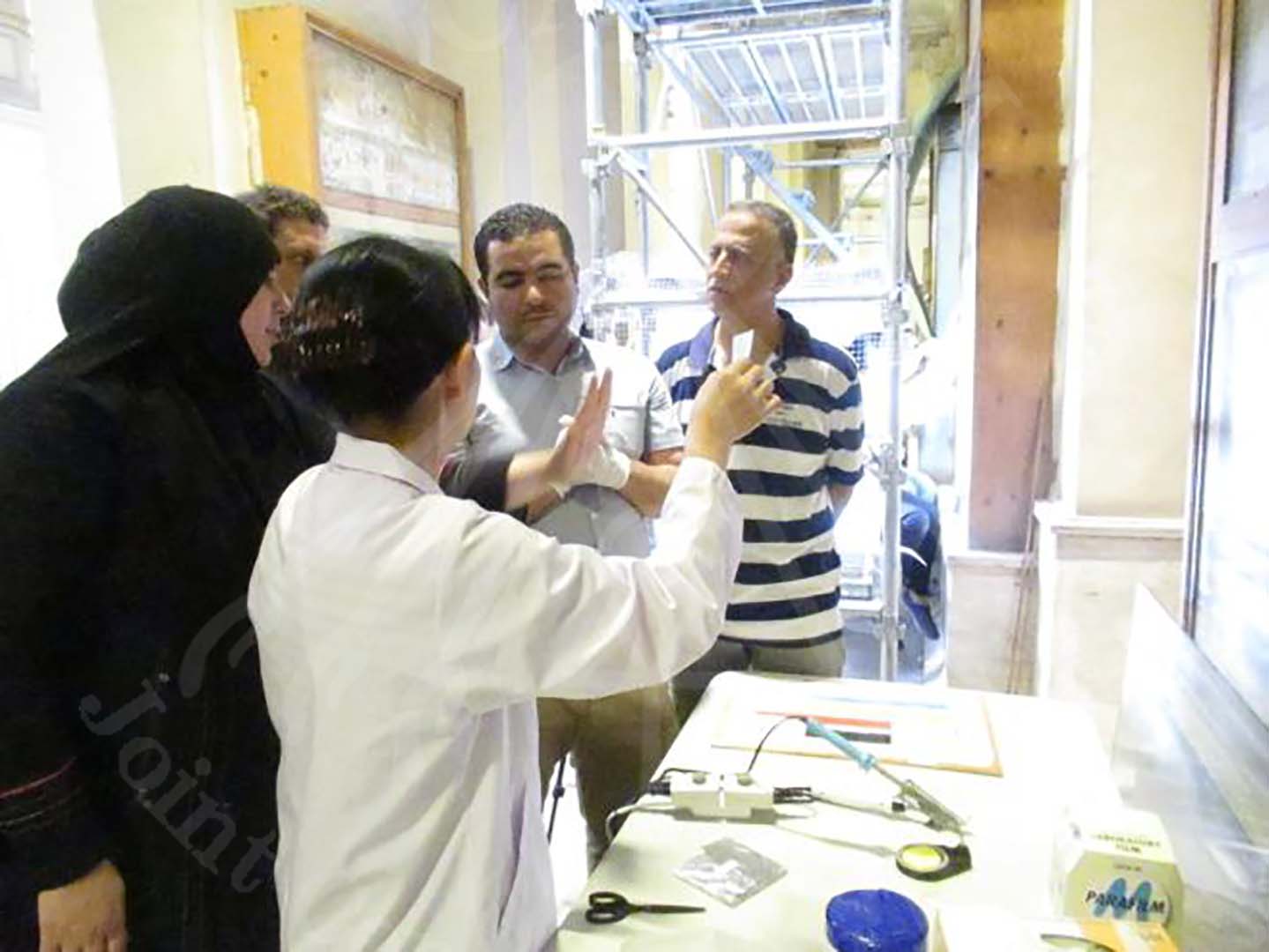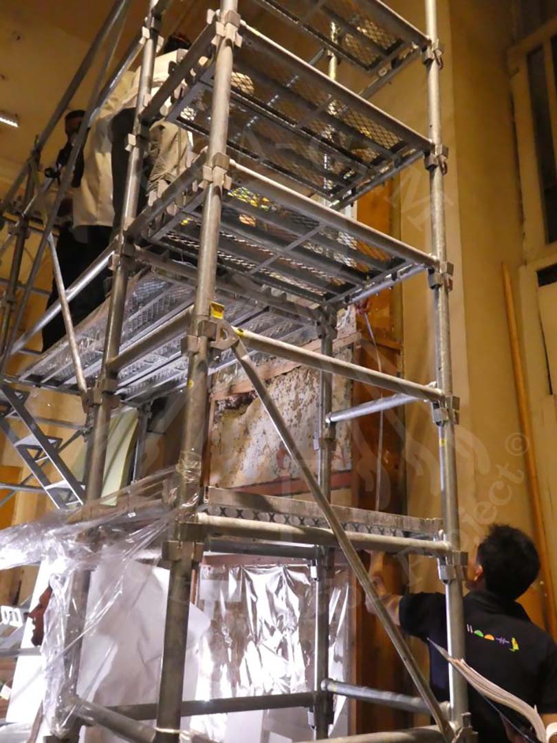 対象遺物である3点の壁画の応急処置を終えた後、壁画を壁から降ろし、梱包し、安全に移送するための準備を移送チームが開始しました。