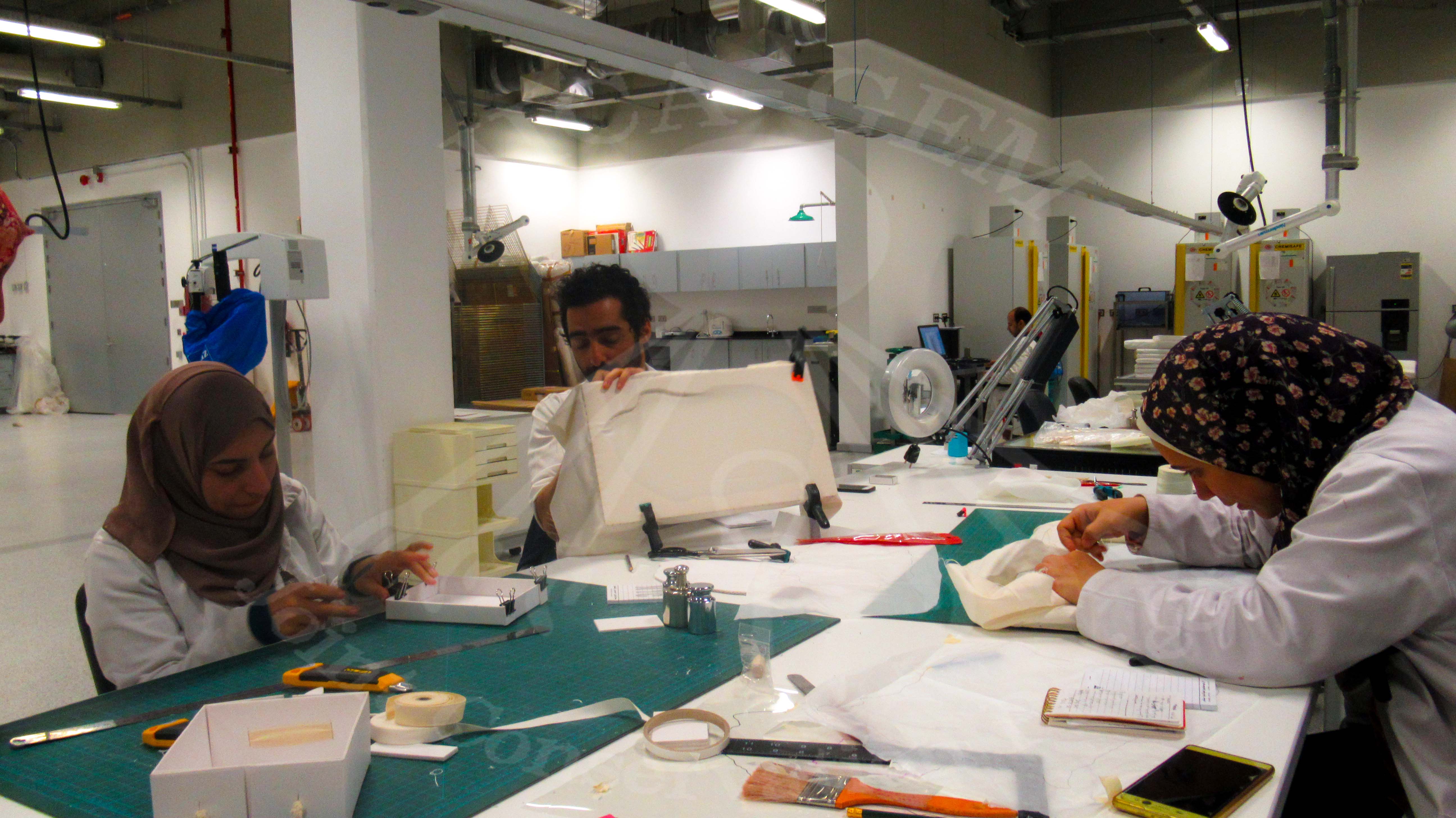و قد قام الخبراء بتصنيف القطع الأثرية المستهدفة حسب انواع القوالب المناسبة لكل قطعة، ثم شرع فريق النسيج في صياغة ورسم تصميم القالب المحدد لكل قطعة باستخدام الأوتوكاد، والآن تسير عملية تصنيع القواعد بمعدل ثابت.