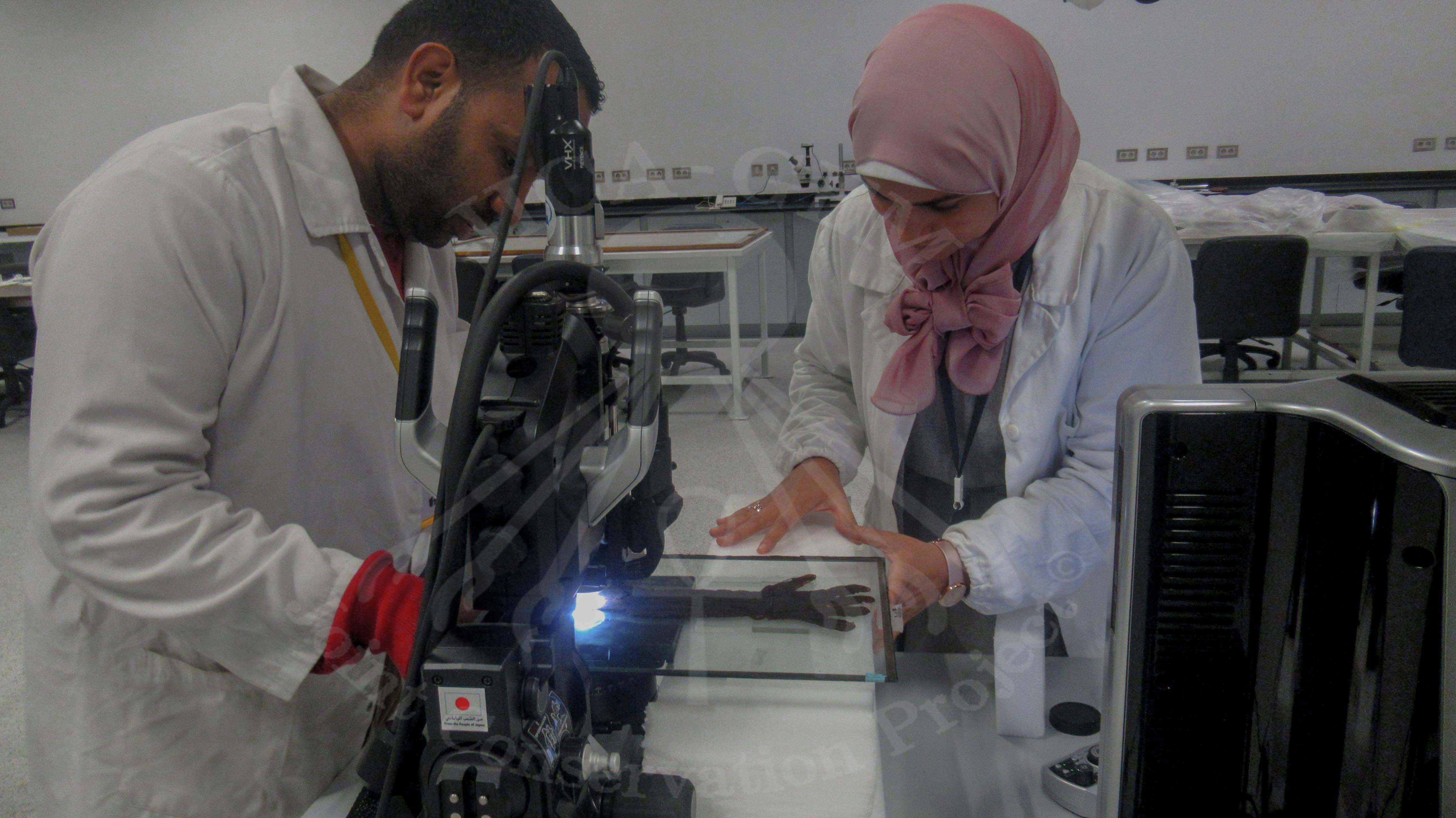 これらの異質な材料のなかには、塩、真菌および虫の死骸が含まれており、殺虫処置後でも繊維内に残っていました。専門家チームは細心の注意を払って対象遺物を記録するため新しく得られた情報をすべて分析しています。