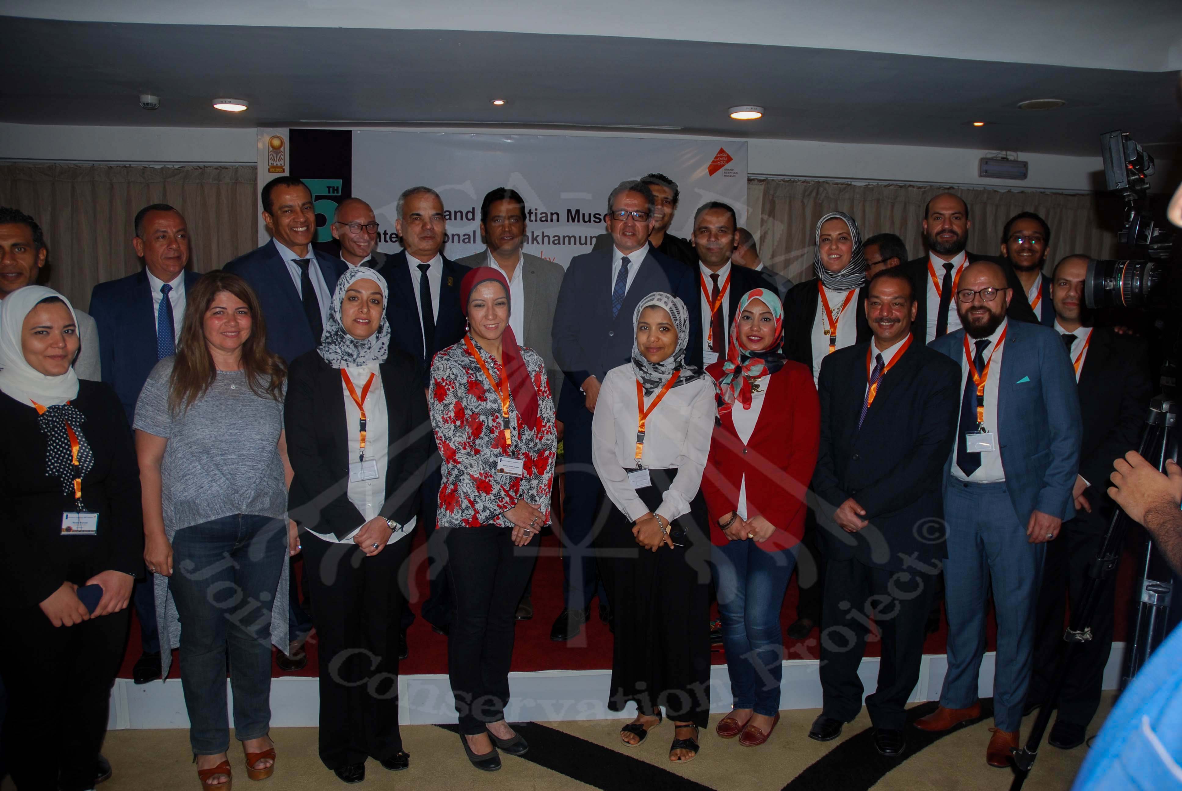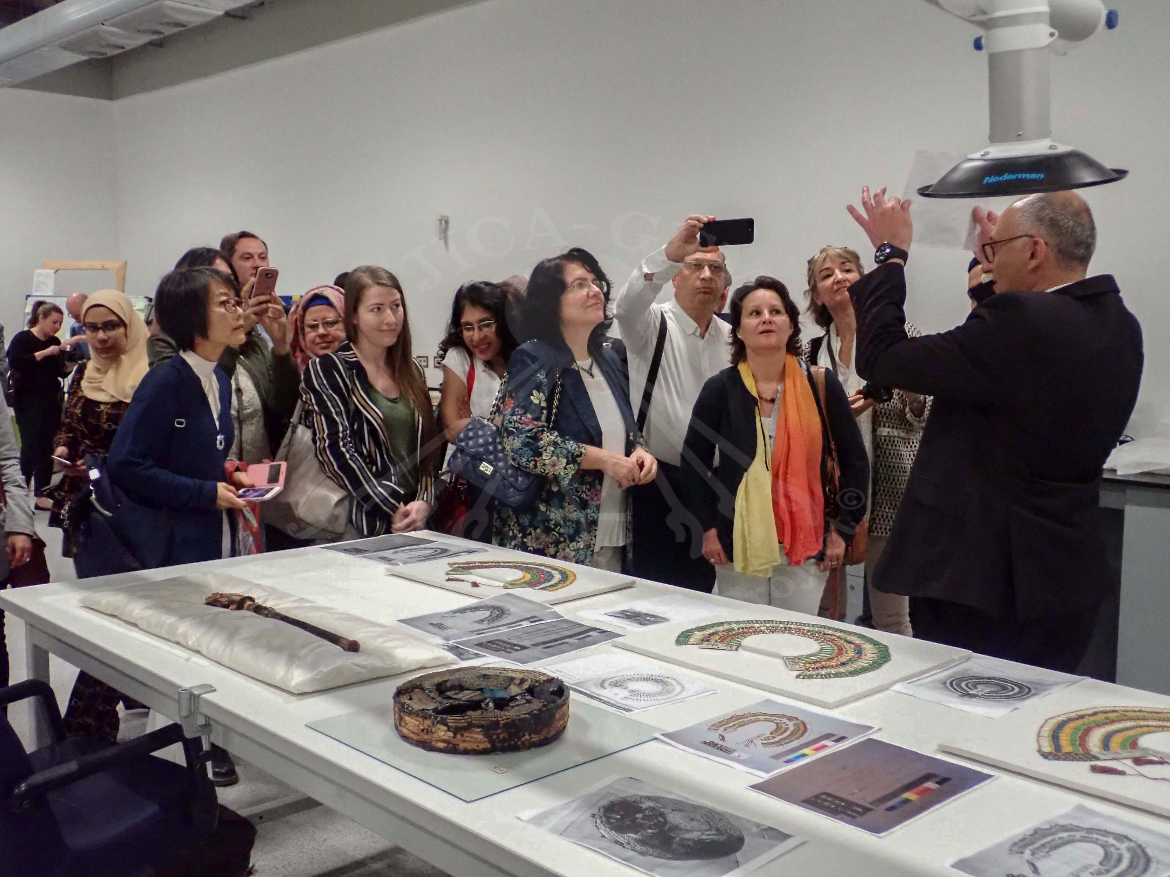 初日は、前GEM館長のタレク博士と共に大エジプト博物館保存修復センター(GEM-CC)を視察し、GEMの目玉展示となるであろうツタンカーメン王のコレクションの保存修復プロセスを見学しました。同会議では国際的な学者や研究者らによる講義も多数あり、ツタンカーメン王の遺物についての最新の研究結果に関する議論も行われました。