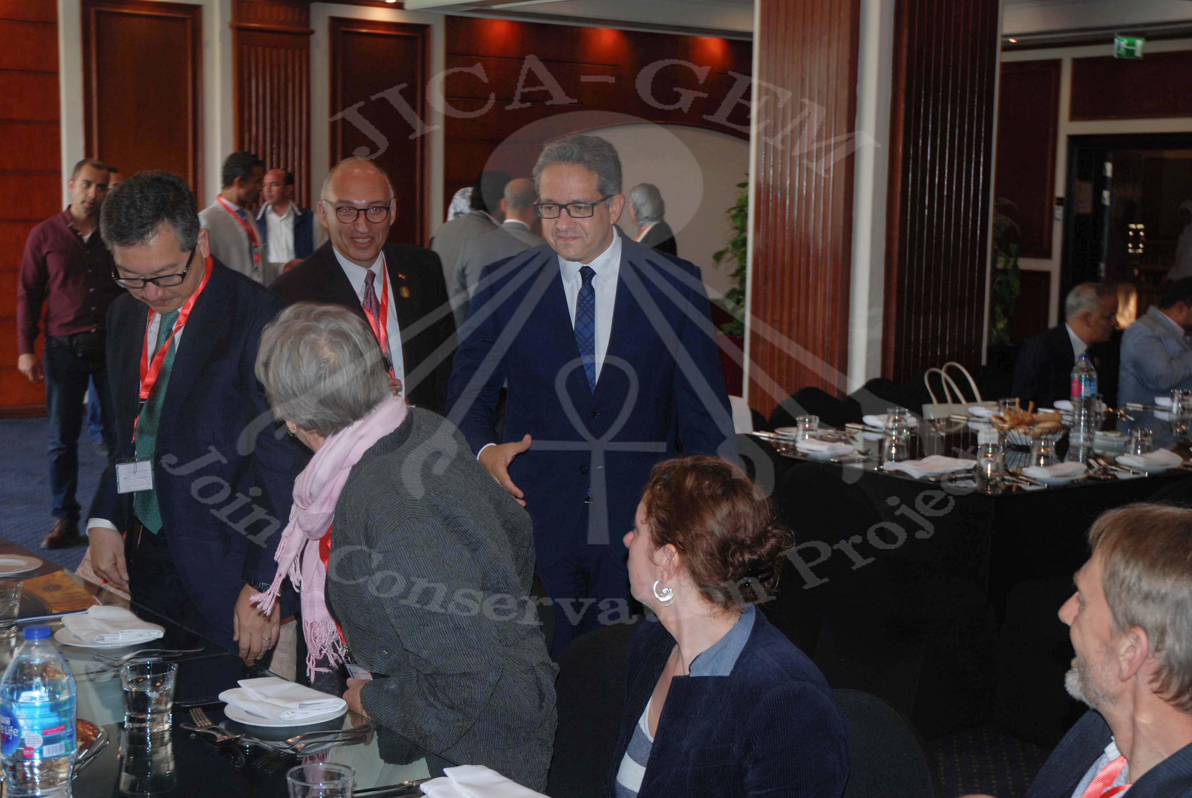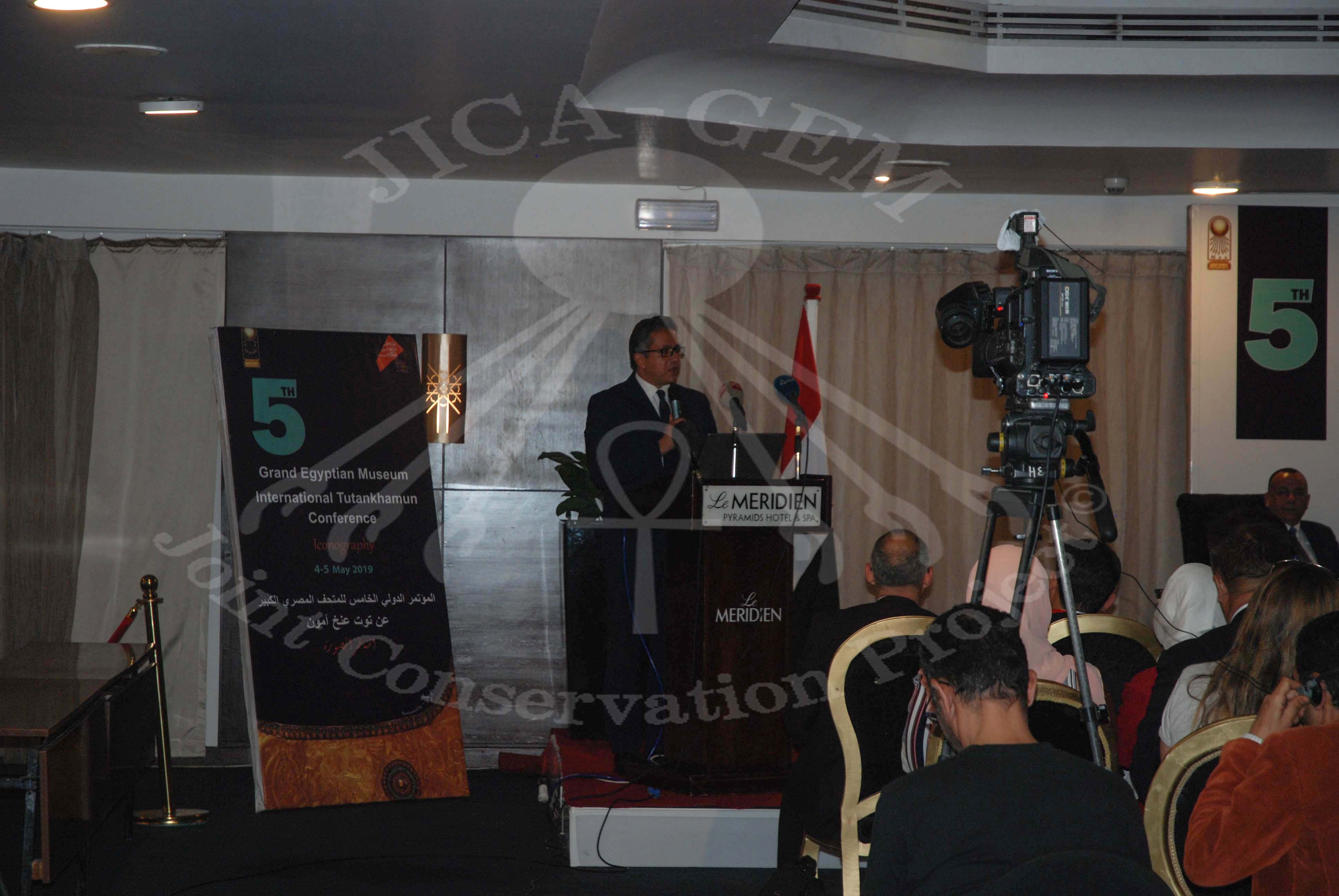 国際会議ではまず、エジプトのアナーニー考古大臣よりご挨拶があり、カイロ・アメリカン大学のエジプト学者で組織委員会代表のへイカル教授と共に「図像学」と題した講演をしていただきました。参加者のなかには、有名なエジプト学者で前・考古省大臣のザヒ・ハワース教授や日本の能化正樹エジプト大使(当時)も来賓されました。