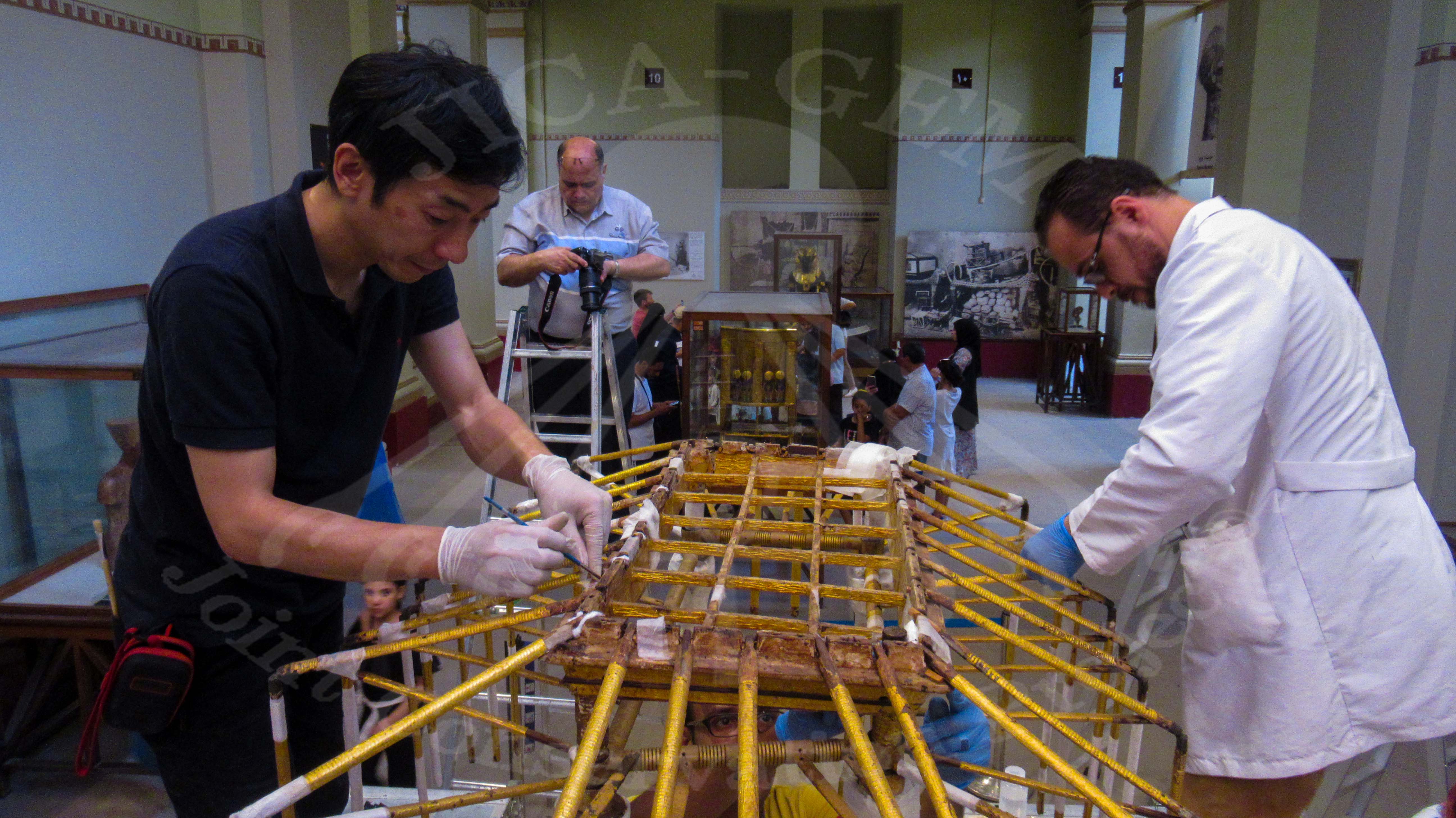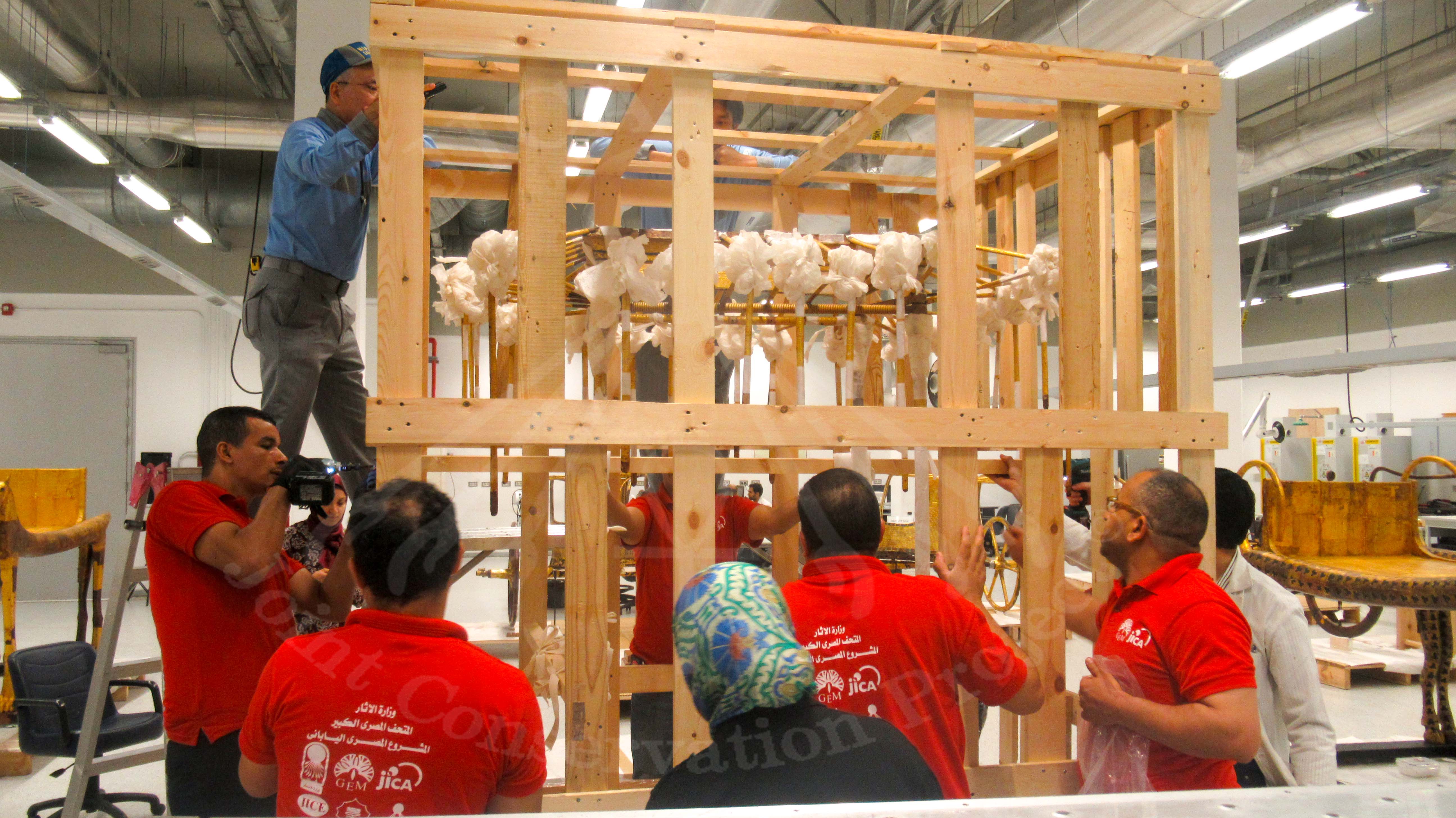 وقد قام خبراء فريق الترميم المصري- الياباني المشترك بوضع خطة شاملة فيما يتعلق بالتغليف والنقل الآمن للقطعة الأثرية.