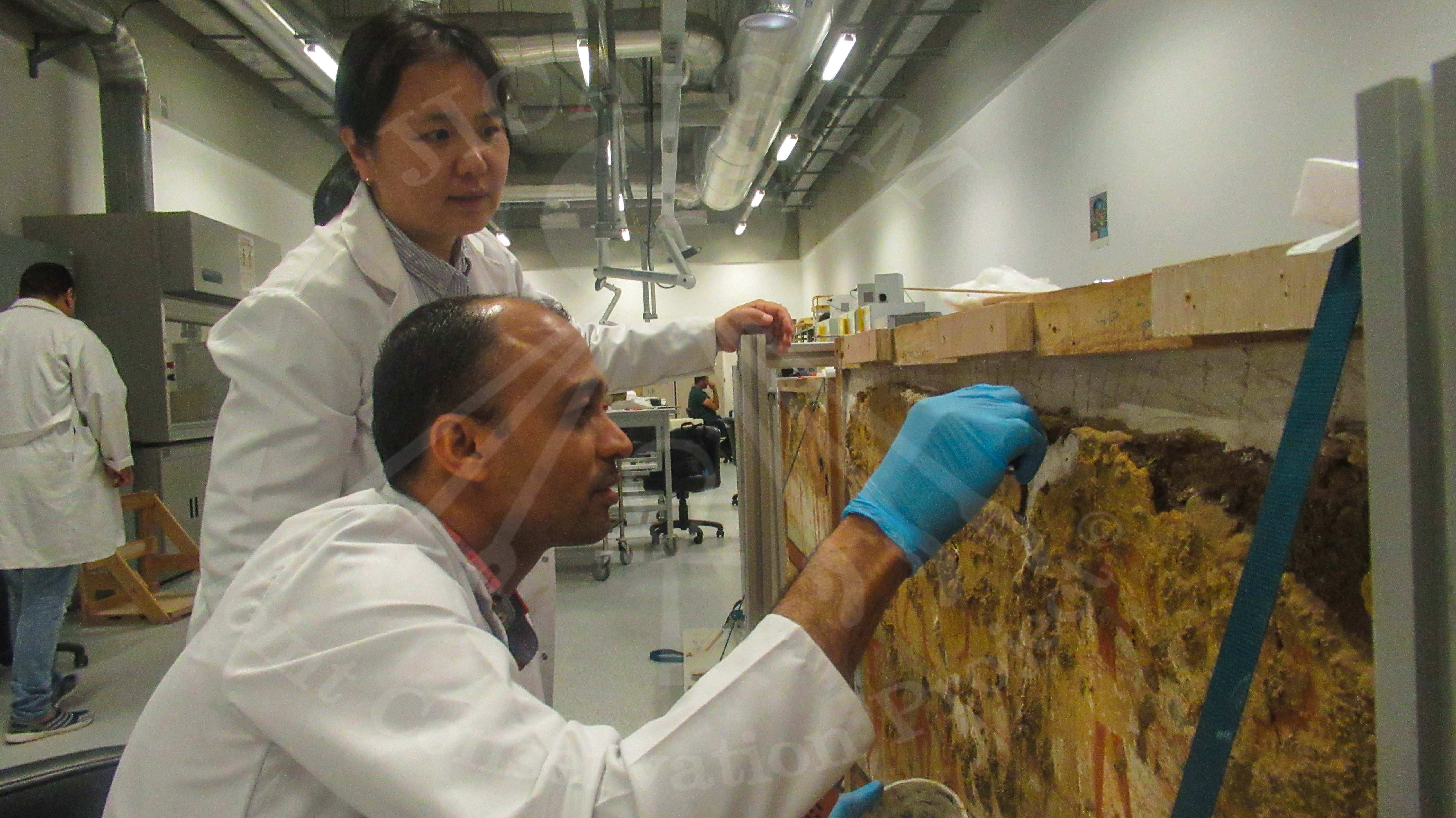 そしてエジプトのスサや黄土を含む仕上げ層をモルタルの上に重ねました。これにより、漆喰をより自然に見せることができます。これらの地道な努力は、GEMでこの壁画が展示されるとき報われることでしょう。